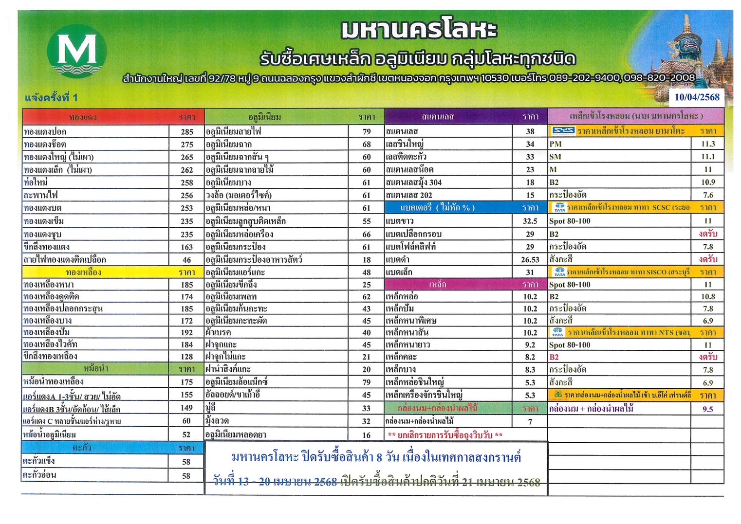 เขตหนองจอก กรุงเทพมหานคร 10530เวลาทำการจันทร์-เสาร์ เวลา 08:00-16:00 น.© 2025 บริษัท มหานคร เมททอลสแครป จำกัด. All Rights Reserved.นโยบายความเป็นส่วนตัว